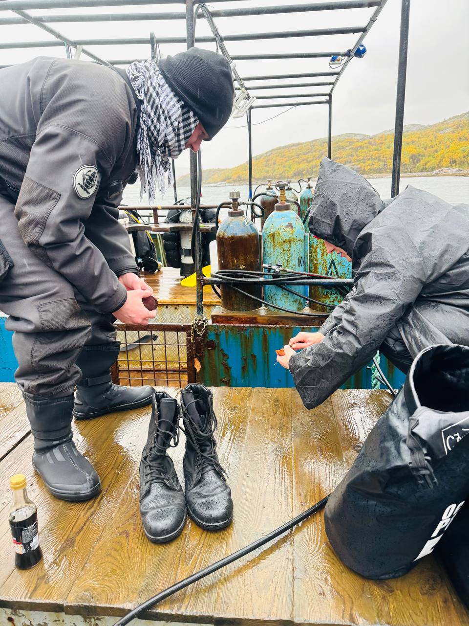 Огромное спасибо дайвинг-центру Diversea Liinahamari за организацию погружений, а также команде судна «Малыш» — за навигацию, помощь со снаряжением и уютную атмосферу на борту!