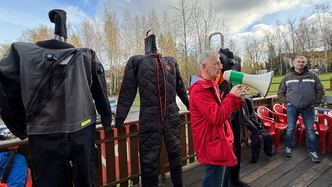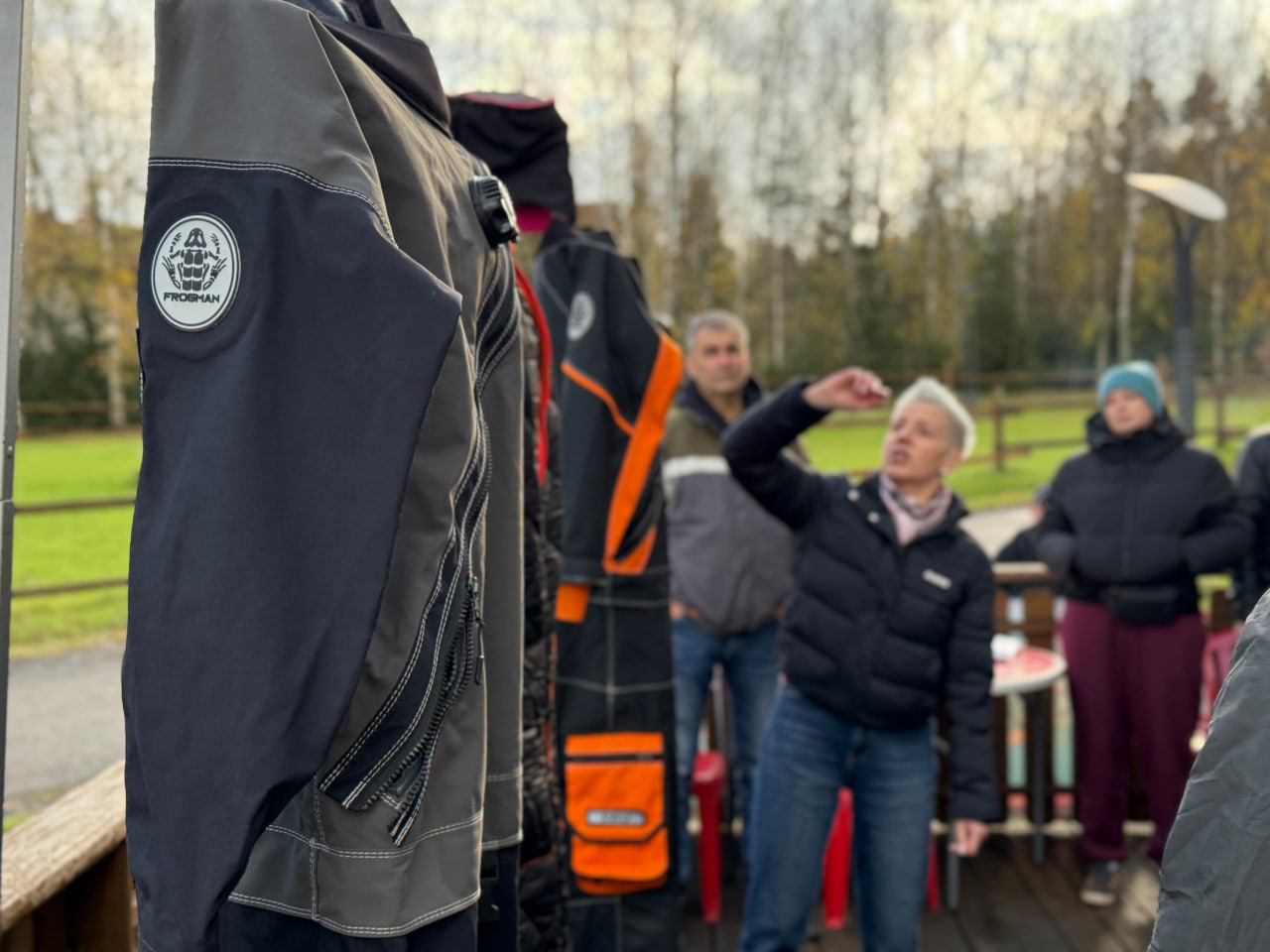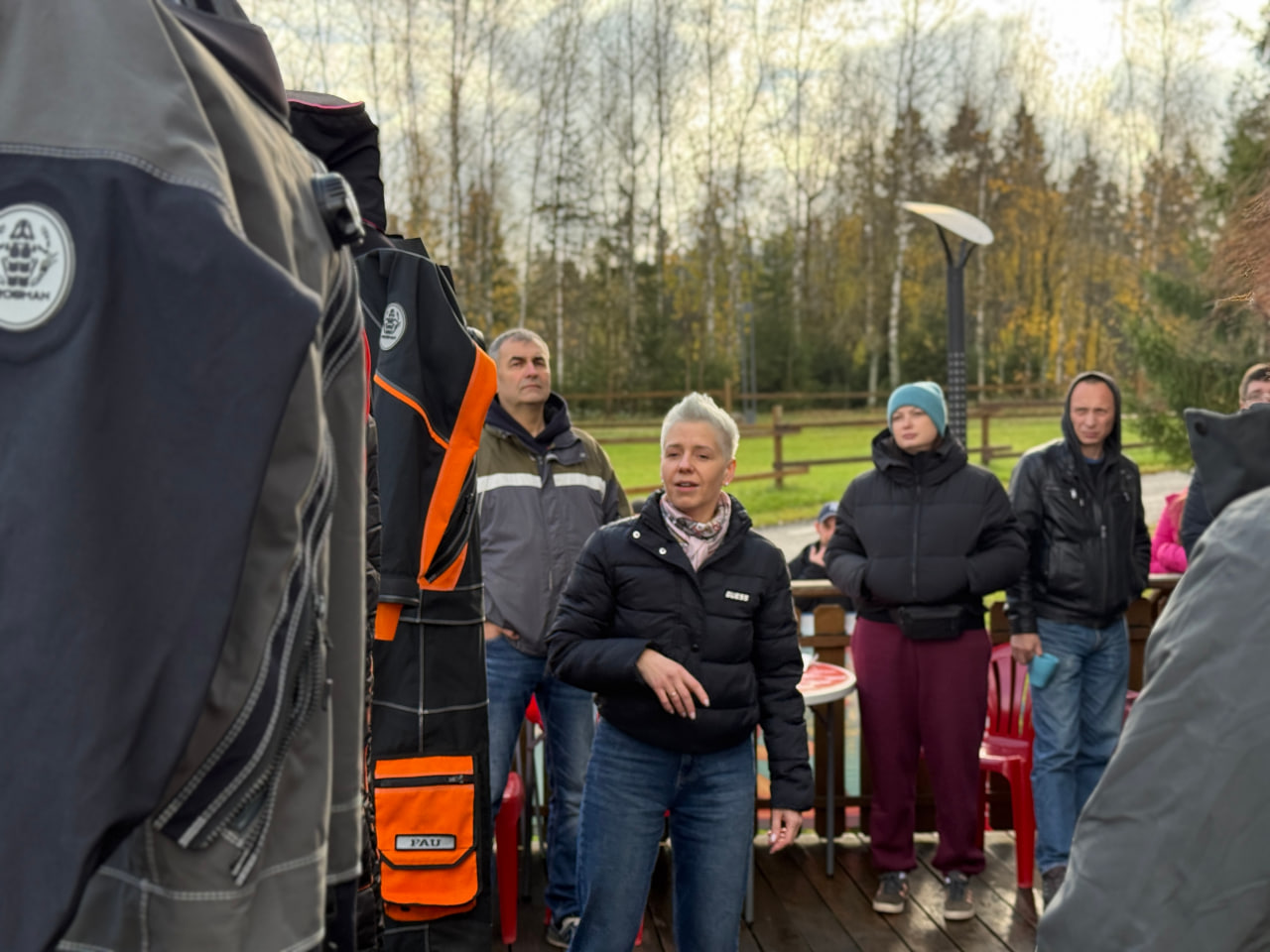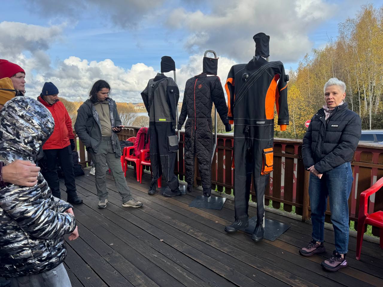 Утро началось с ароматного кофе, горячего чая и приветствий старых друзей. После регистрации участников команда FROGMAN представила новинки сезона: сухие костюмы ARGO, новые крылья, буй и утеплитель комбинезон.