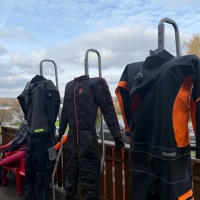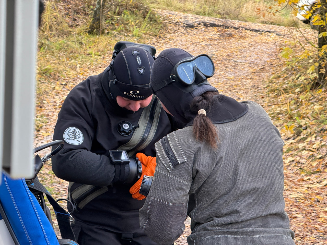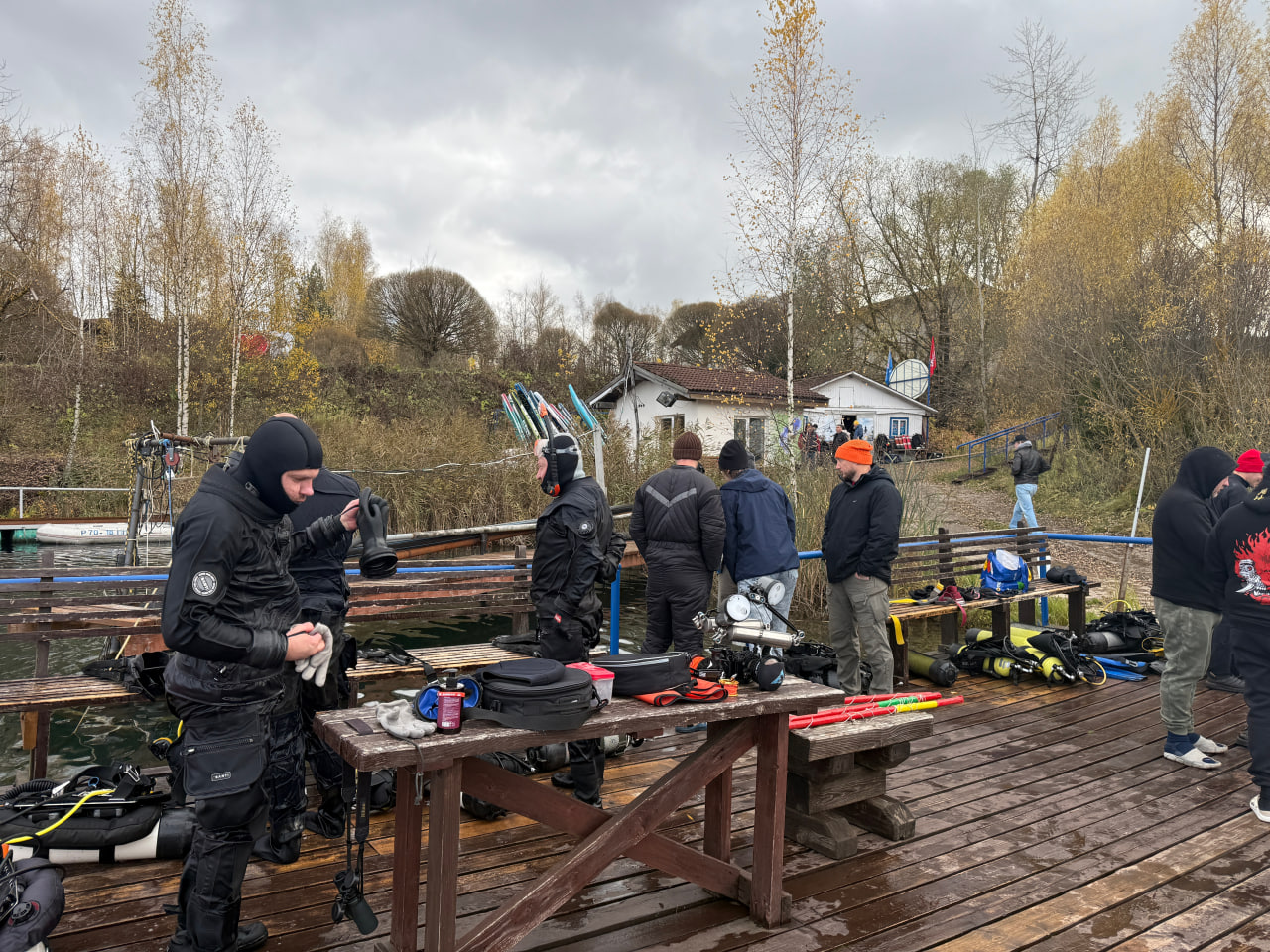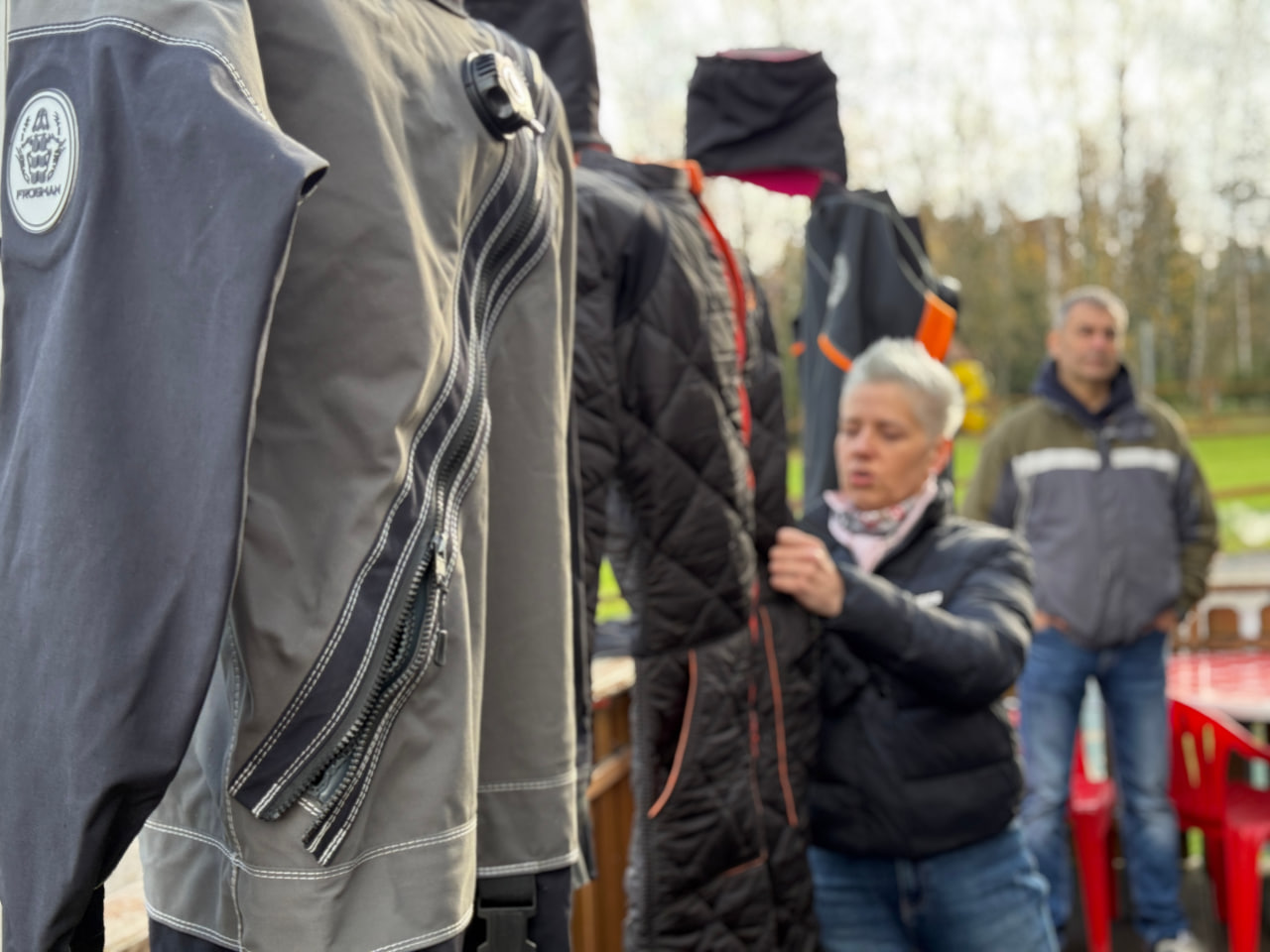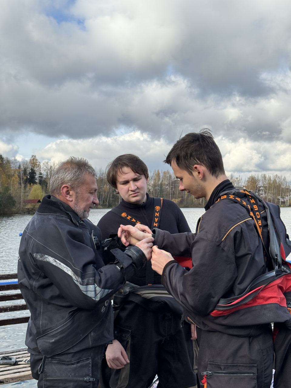 Утро началось с ароматного кофе, горячего чая и приветствий старых друзей. После регистрации участников команда FROGMAN представила новинки сезона: сухие костюмы ARGO, новые крылья, буй и утеплитель комбинезон.