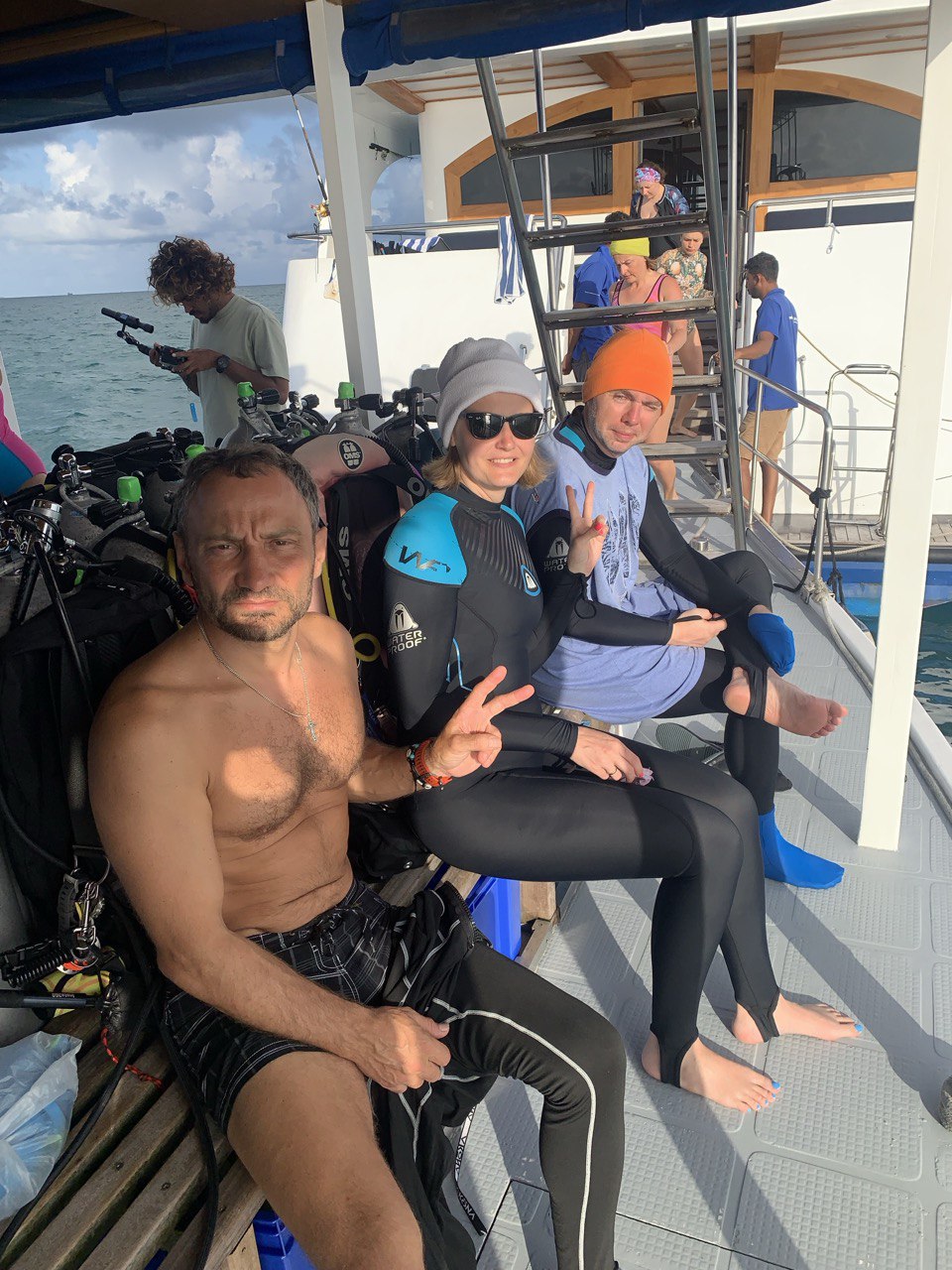 Мы провели дни на борту «Мальдивианны» и каждый день погружались в подводный мир, полный красок и удивительных встреч. В бухте Ханифару нас окружали скопления мант, а вечерами мы сидели на палубе и смотрели, как солнце уходит за горизонт и окрашивает небо в золотые и розовые тона. Вместе с турлидерами Ириной Квасовой и Максимом Котляром мы открывали самые красивые уголки Мальдив и чувствовали, что время здесь течет иначе.