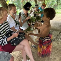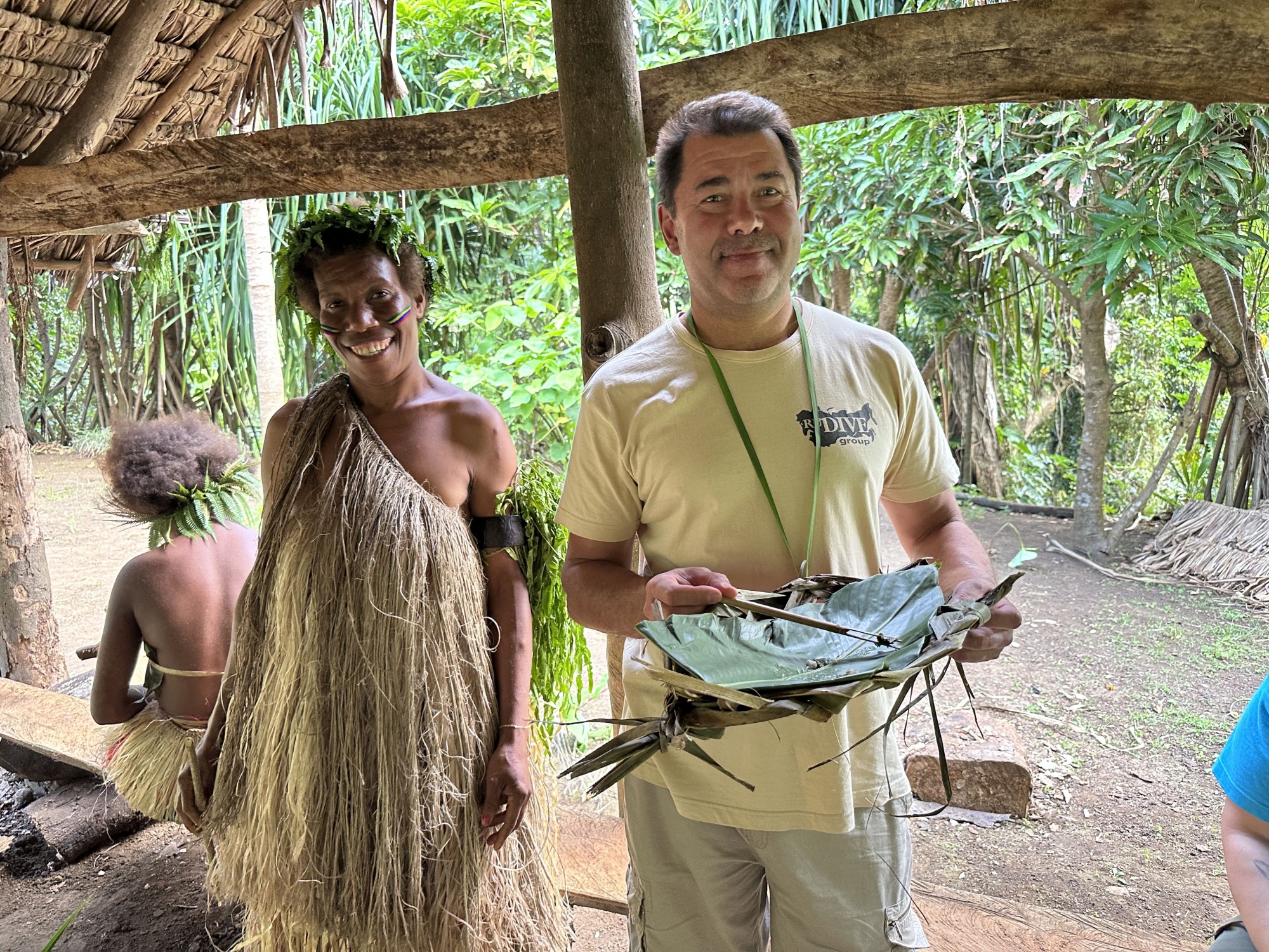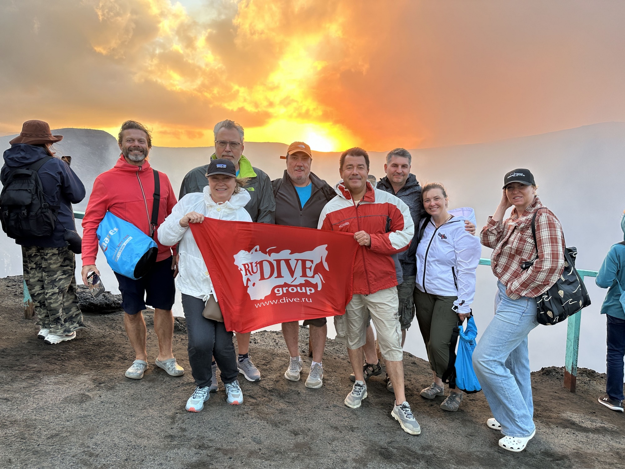 Третьим этапом большого путешествия RuDIVE по Океании стала поездка на Вануату, а главной ее целью – поход на действующий вулкан Ясур на острове Танна. Очень редко можно постоять прямо на краю кратера действующего вулкана и заглянуть в преисподнюю, откуда вырывается пламя, бьют фонтаны магмы и летят огненные шары. Подобное зрелище мы видели в Эфиопии на лавовом озере Эрта Али, но то была спокойная дыра в сердце Земли, а вулкан Ясур извергается громко и мощно. Для многих из нас это стало первым свиданием с настоящим действующим вулканом, так что эмоции зашкаливали, особенно когда мощный пламенный фонтан с искрами и летящими раскаленными камнями вырывался из живописного кратера. Помимо посещения вулкана и полета над ним, рудайверам удалось поплавать и понырять в красивейшей голубой пещере, поискать в заливах дюгоня (правда, в этот раз не нашли), пообщаться с настоящими туземцами в деревне староверов, живущих по законам и традициям далеких предков, а также попробовать другие активности. Все это в сочетании с прекрасной клубной компанией и душевной атмосферой, сделало большое путешествие по Океании настоящим праздником. Под воду – с друзьями!
