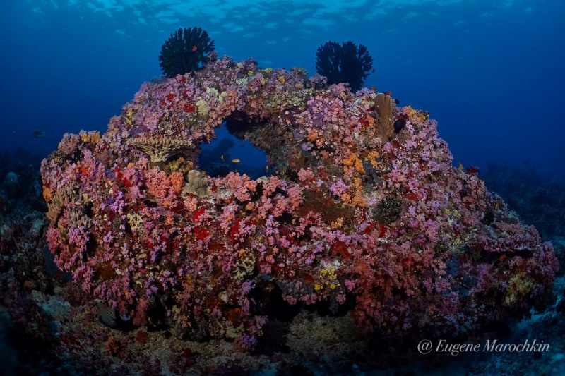 Погружения у вертикальных стен и рифовых вершин, покрытых мягкими кораллами и актиниями