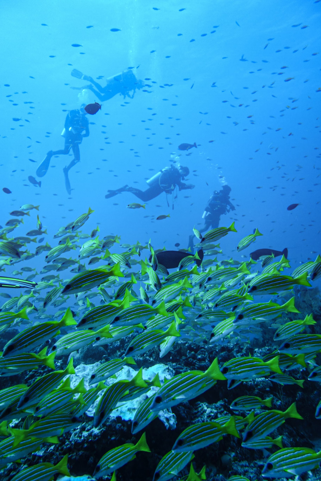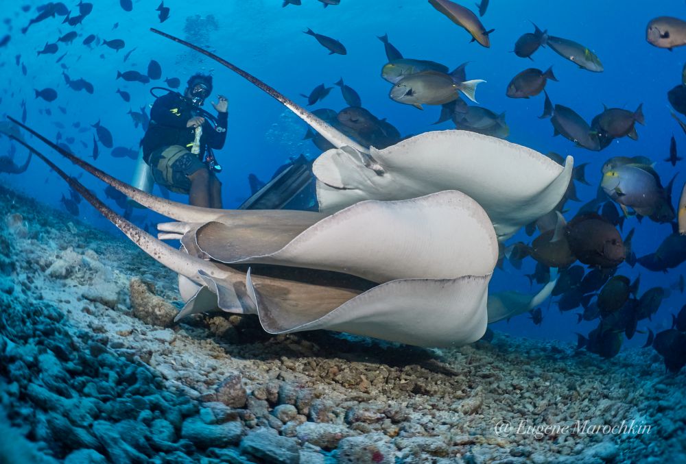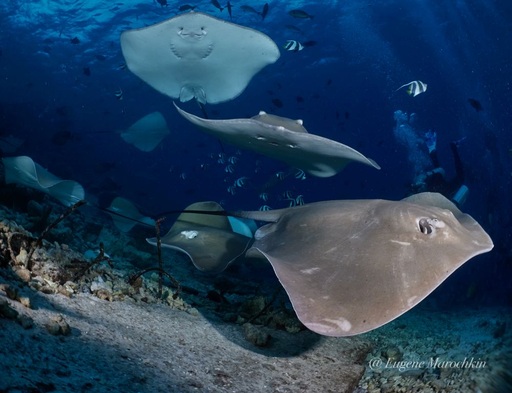 Шанс встретить мант, китовых акул, а также чернопёрых, белопёрых и акул-нянек