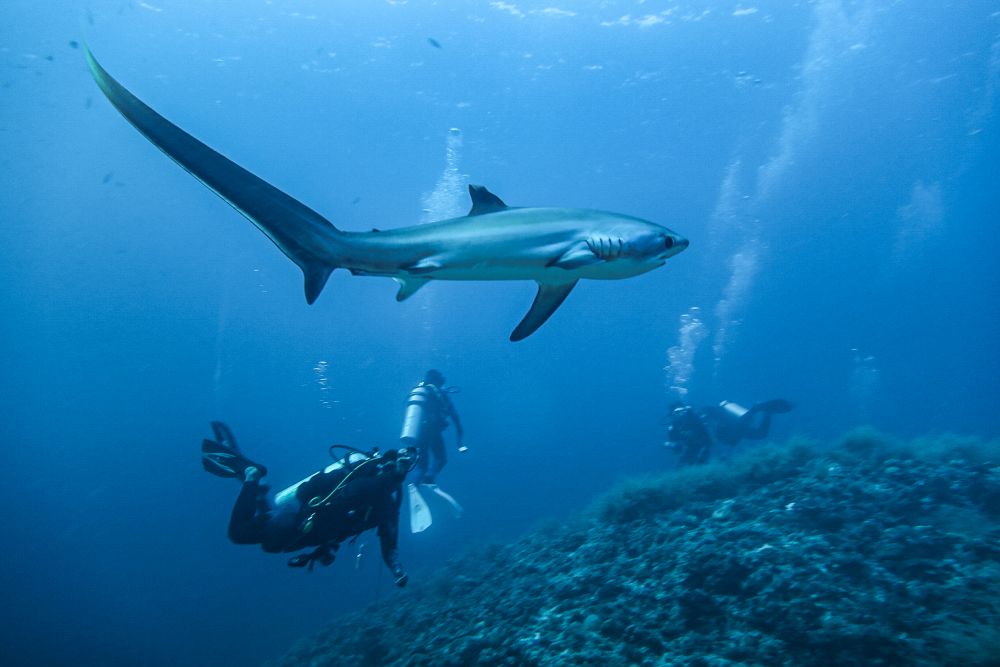 Дайвинг на дайв-сайтах, где встречаются редкие акулы с диковинными длинными хвостами